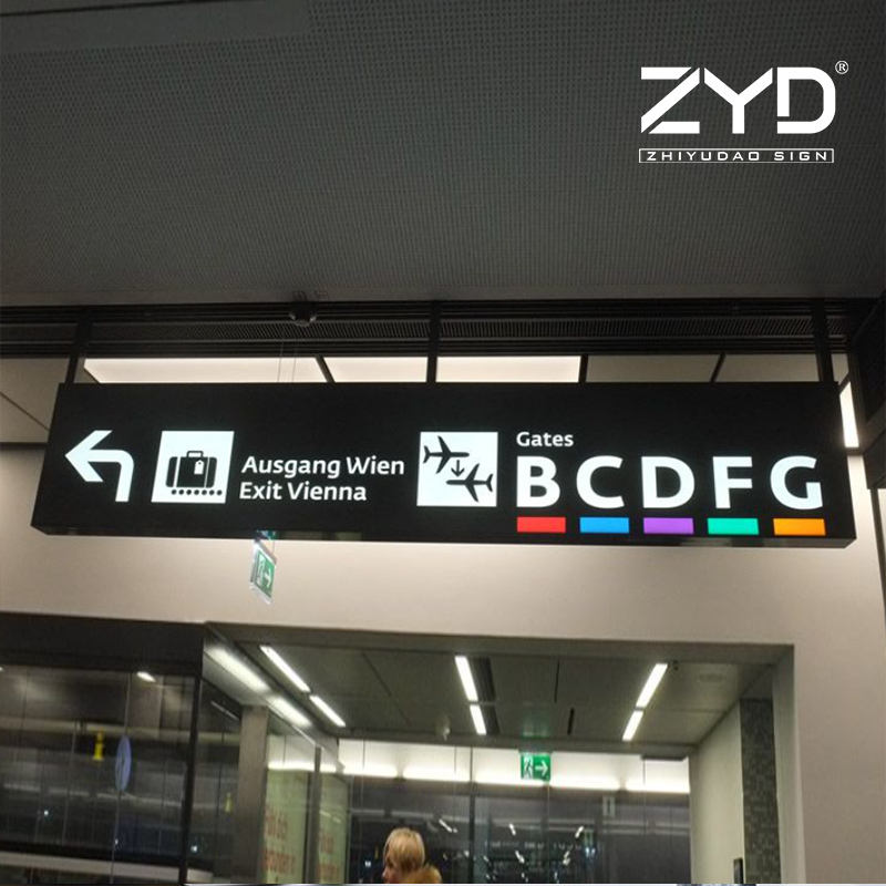 Panneaux directionnels multilingues pour aéroports internationaux et gares de bus interurbains, pictogrammes standard