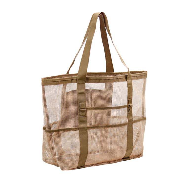 Sac fourre-tout de plage en maille noire légère de haute qualité avec plusieurs poches Design pliable pour les vacances de natation d'été