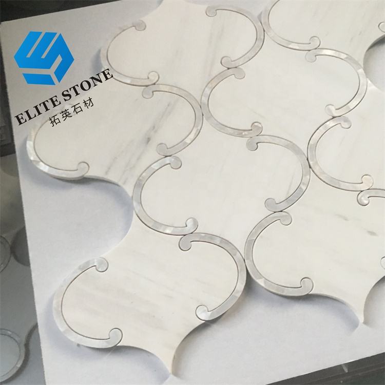 Nom du produit:Marbre de médaillons de plancher irrégulier de Chevron de tuile de mosaïque blanche