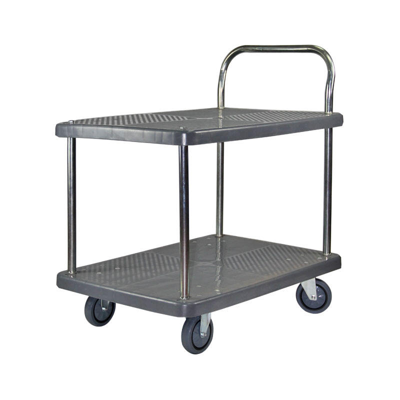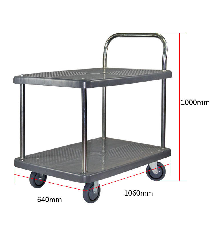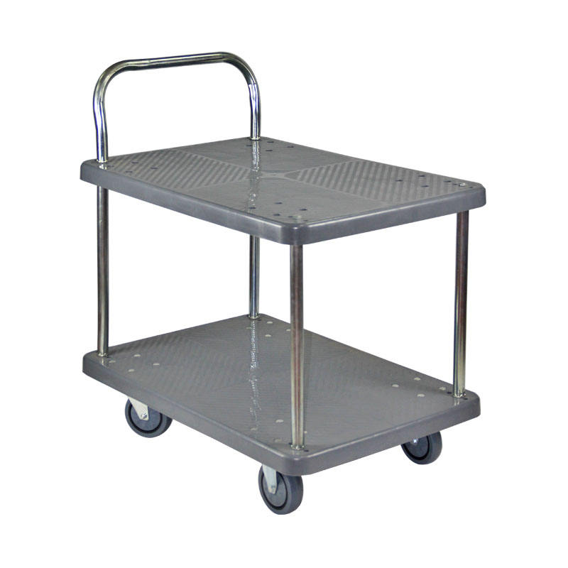Tailles et charges multiples Chariot à plate-forme gris à 2 niveaux Chariots à plate-forme en plastique à 2 niveaux pouvant être utilisés en diverses occasions