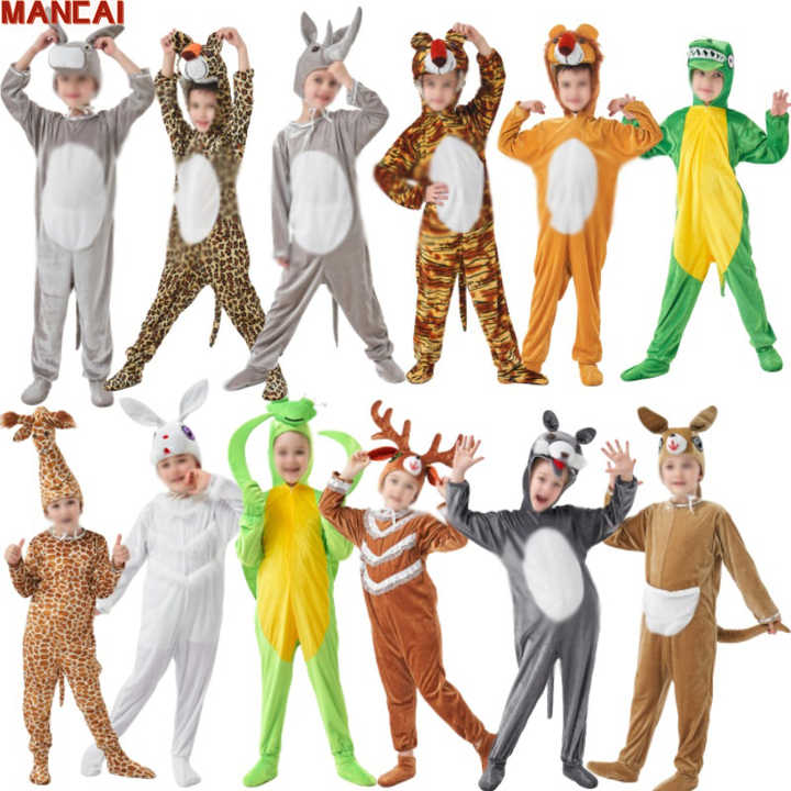 Plusieurs types de costumes d'animaux d'Halloween pour enfants Pyjama Onesie en peluche Tigre Loup Cartoon Anime Show Performance Costume