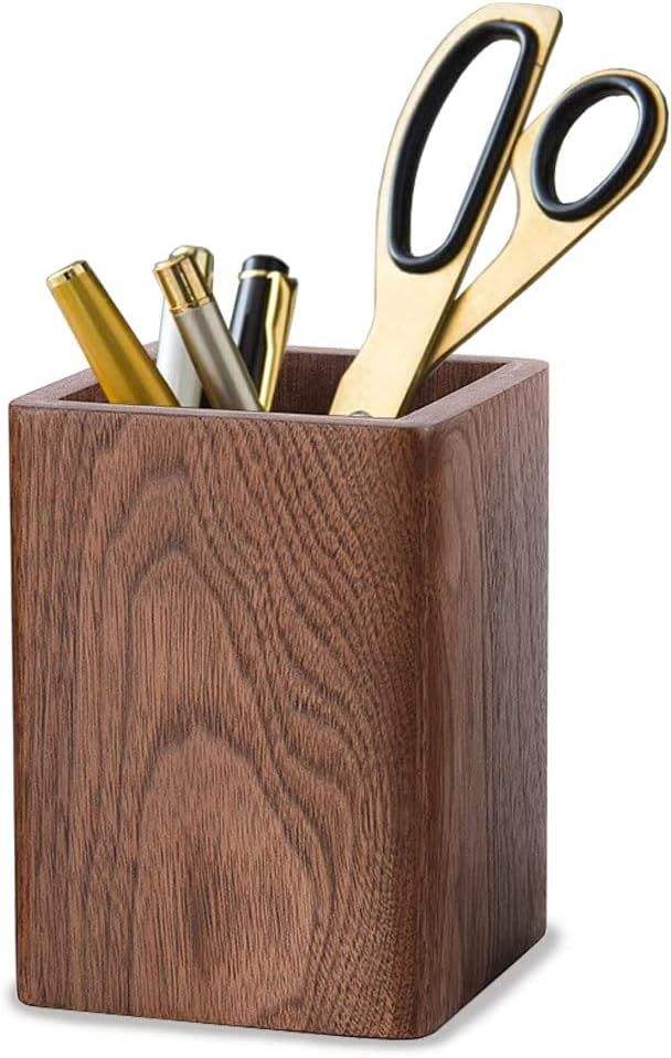 Organisateur de bureau multi-usages en bois de noyer noir pour stylos et papeterie, boîte à crayons en bois