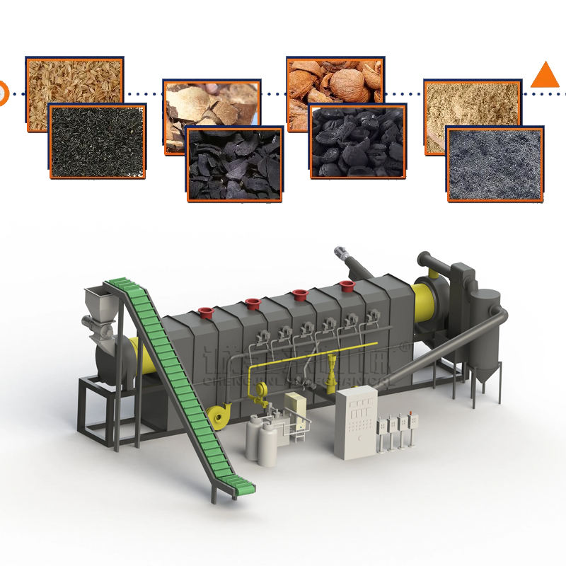 Four de carbonisation continue polyvalent pour les feuilles d'abaca, traitement durable des déchets organiques, machinerie professionnelle
