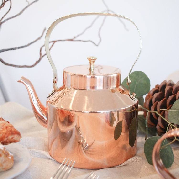 Bouilloire à thé en cuivre multifonctionnelle, finition mate avec poignée, design artisanal pour faire bouillir de l'eau, servir du thé et décorer la maison
