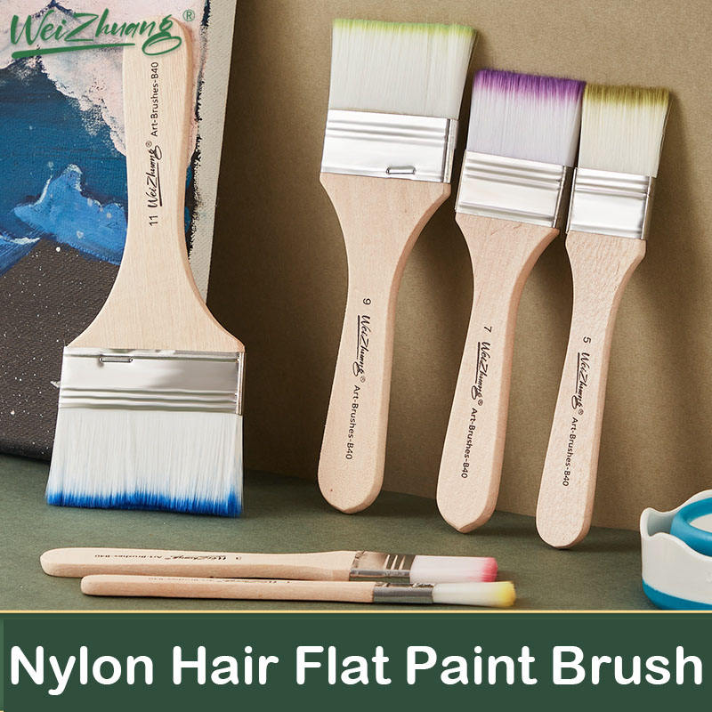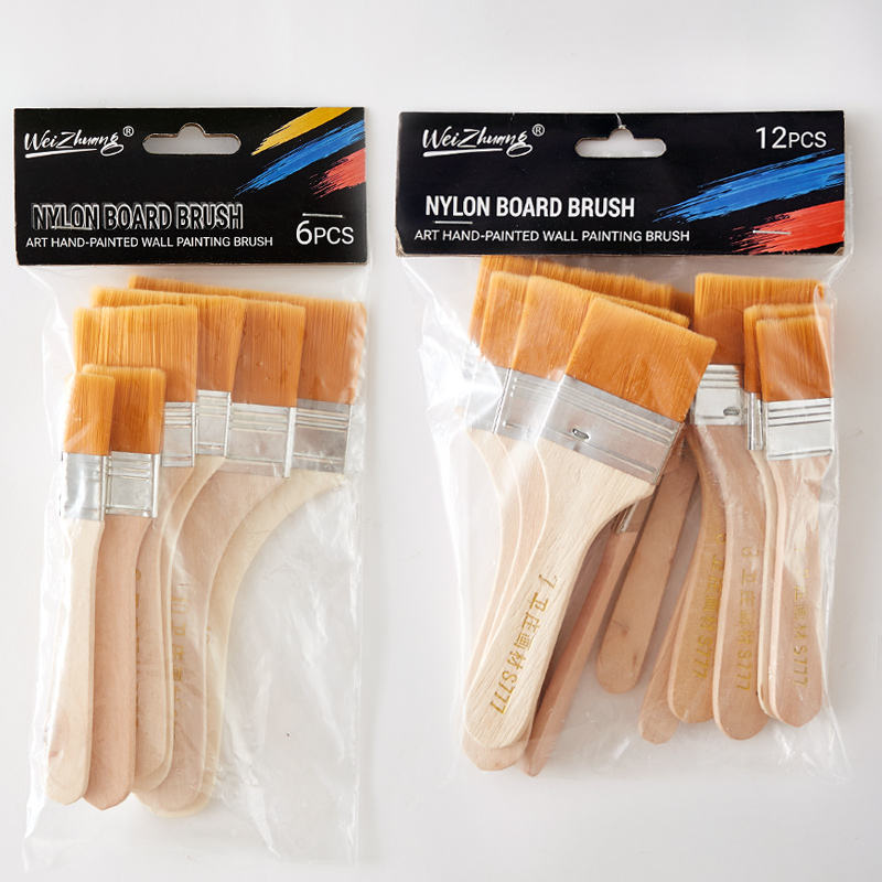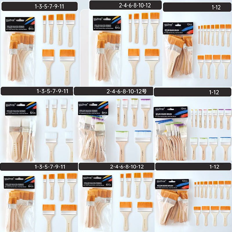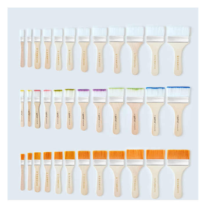 Pinceaux en nylon polyvalents de différentes tailles avec manche en bois pour les peintres d'art professionnels.
