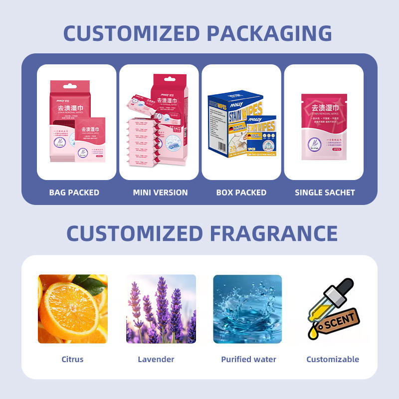Lingettes Humides Polyvalentes Détachantes Instantanées d'Urgence pour Vêtements