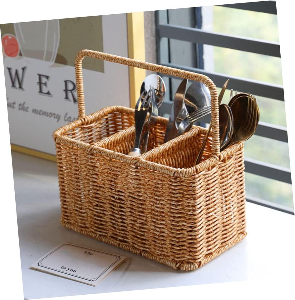 Organisateur en rotin multifonctionnel pour couverts, télécommande, fruits et rangement de papeterie