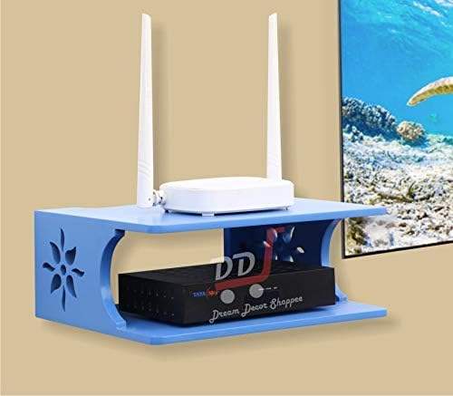 Support mural multifonctionnel pour décodeur, étagère murale, beauté au summum de sa perfection pour modem Wi-Fi, présentoir pour salon et chambre (Bleu)