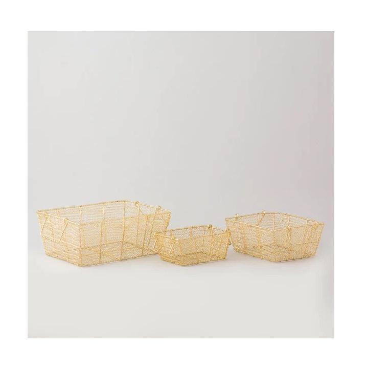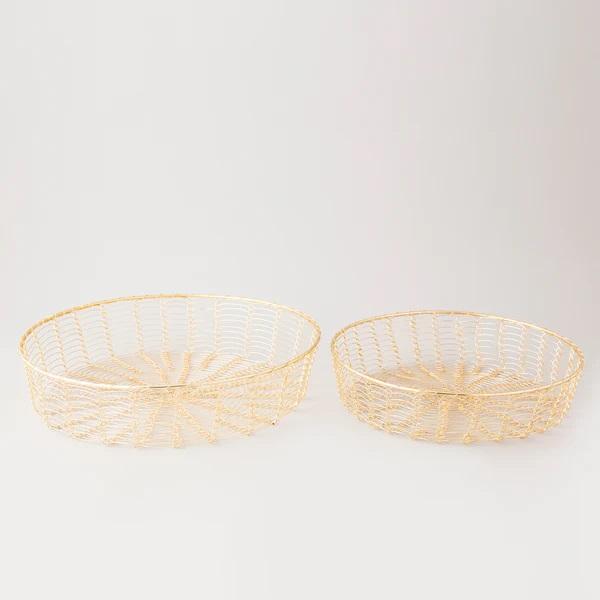 Corbeille à fruits de table polyvalente en fil métallique plaqué or Paniers de rangement faits à la main Corbeille à nourriture en métal de forme ronde