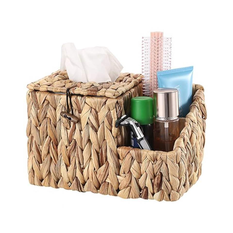 Porte-mouchoirs polyvalent en jacinthe d'eau avec organisateur latéral: Couvercle de boîte à mouchoirs en osier carré