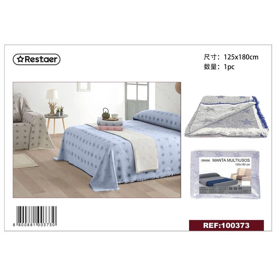 Couverture polyvalente (étoile) 125x180 cm en bleu-Textile de maison