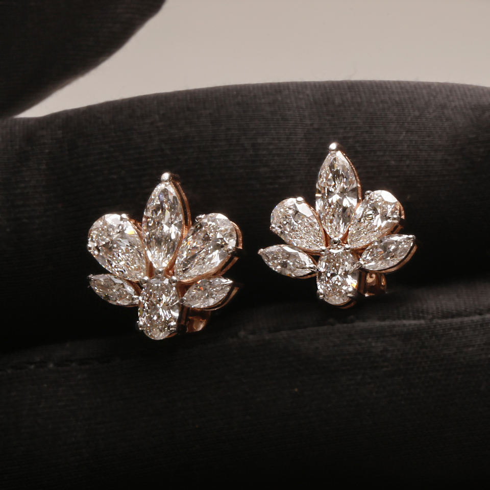 Boucles d'oreilles élégantes en diamant de laboratoire multi-pierres 14KT or massif bijoux de luxe personnalisés pour l'anniversaire des femmes à la mode IGI