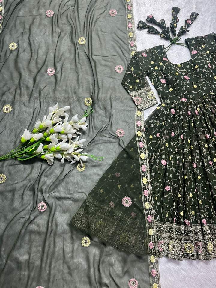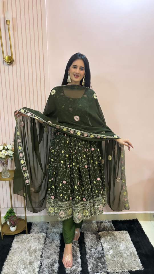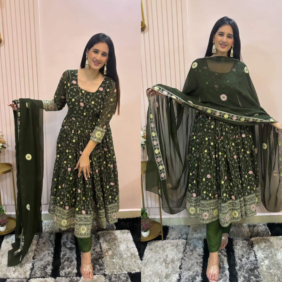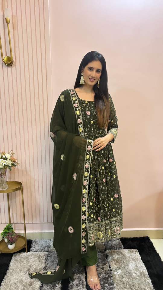 Robe de travail en fausse georgette brodée multifils Tenue de mariée élégante parfaite pour les mariages et les fêtes au prix de gros