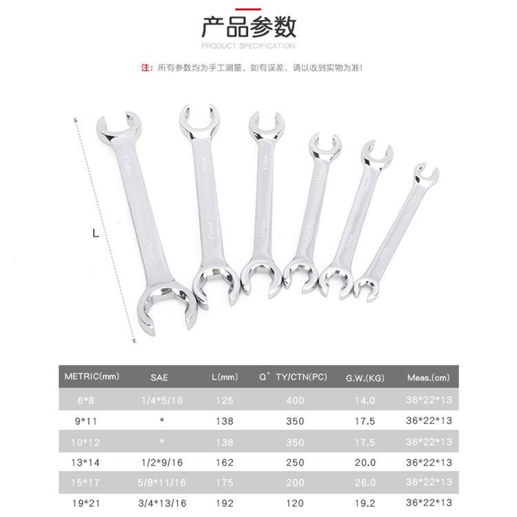 Multitools High Torque Hand Tool 10-17mm Oil Pipe Flare Nut Wrench Set Brake Wrench for Car Repair