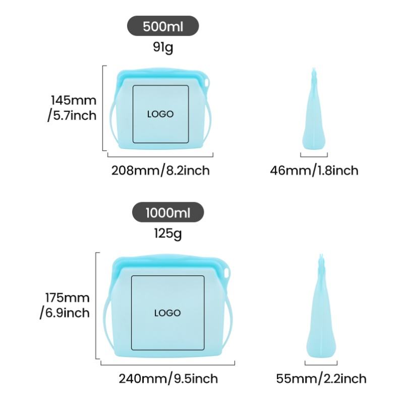 Nom du produit:Sacs de conservation en silicone pour snacks et sandwichs, avec fermeture éclair.