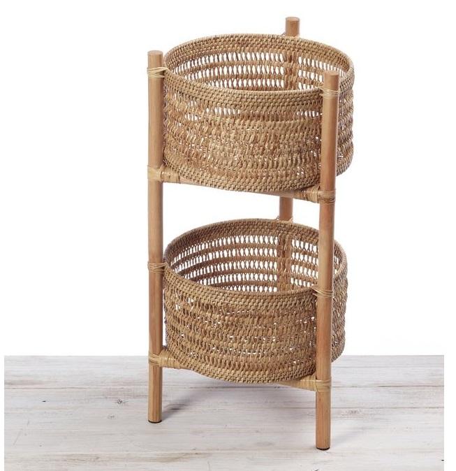 Chariot de service en rotin écologique à usage multiple avec un ton naturel attrayant et un design peu encombrant pour l'intérieur ou l'extérieur