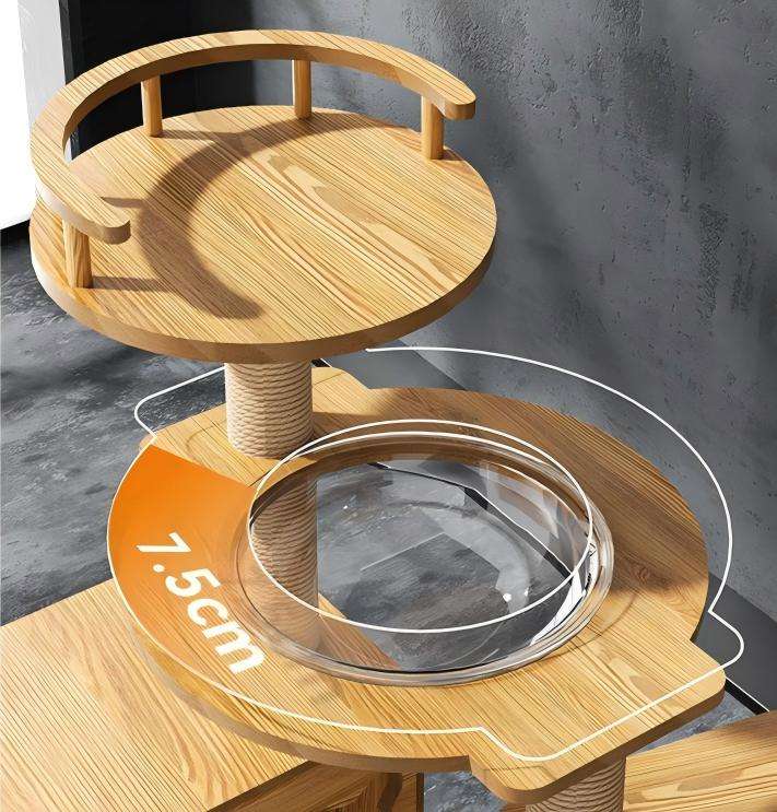 Arbre à chat multi-niveaux en bois pour chat Munchkin avec capsule spatiale, meuble pour animaux de compagnie stable et peu encombrant