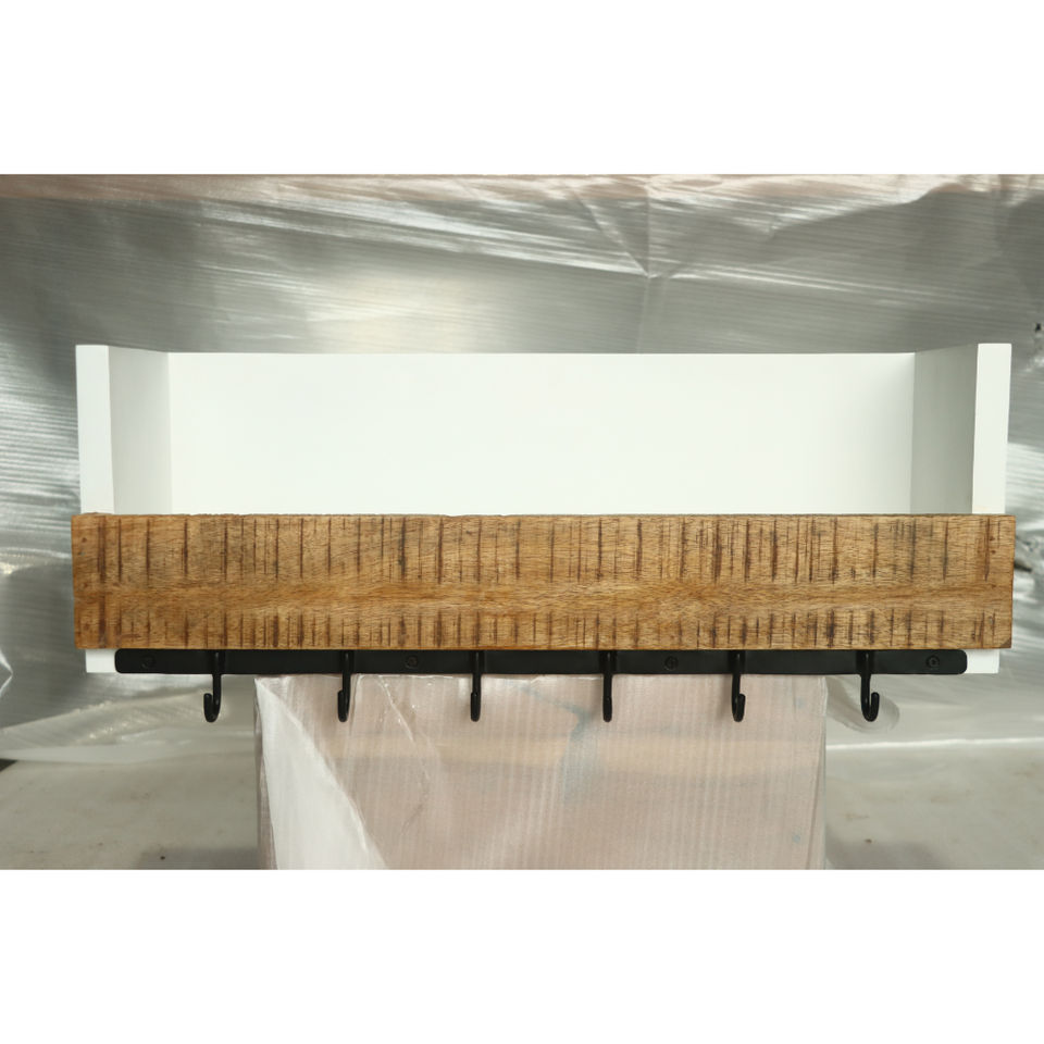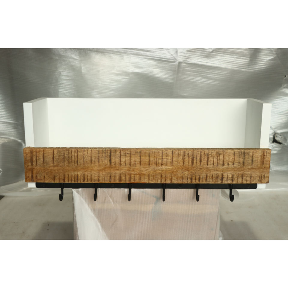 Porte-manteau mural rustique en bois naturel avec crochets métalliques, organisateur décoratif pour entrée