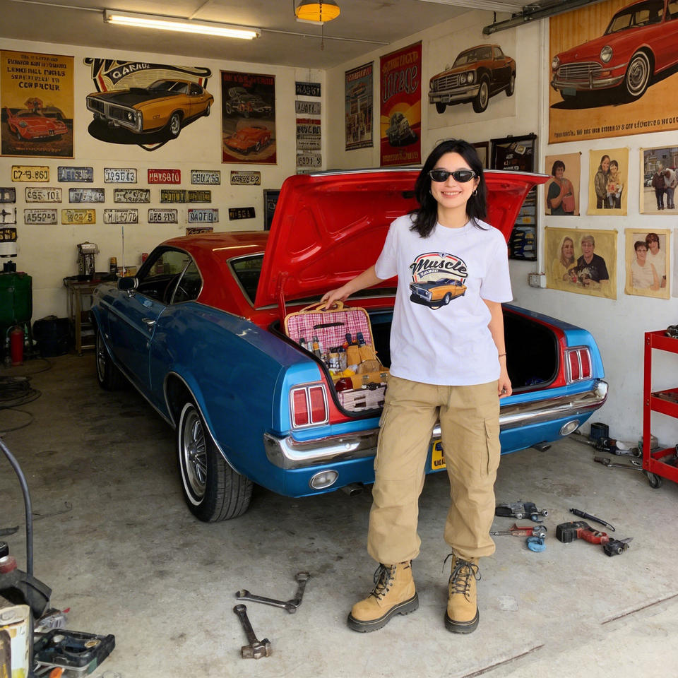 Muscle Garage Car Print T-Shirt à manches courtes pour hommes, 100% coton respirant Q239