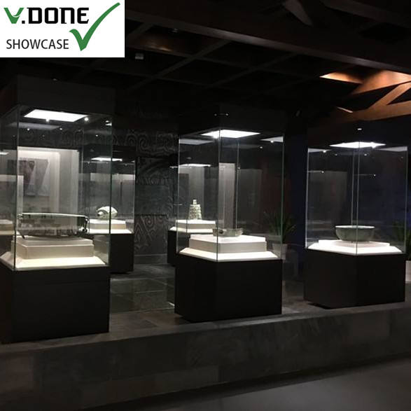 Armoire d'exposition à LED de qualité musée avec support en verre pour applications d'affichage de magasin mobile