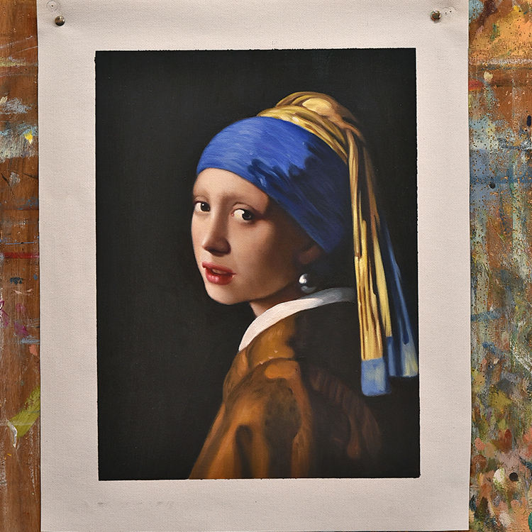 Réplique d'art classique de qualité muséale, peinte à la main à l'huile sur toile, de la célèbre peinture La Jeune Fille avec une Boucle d'Oreille de Johannes Vermeer