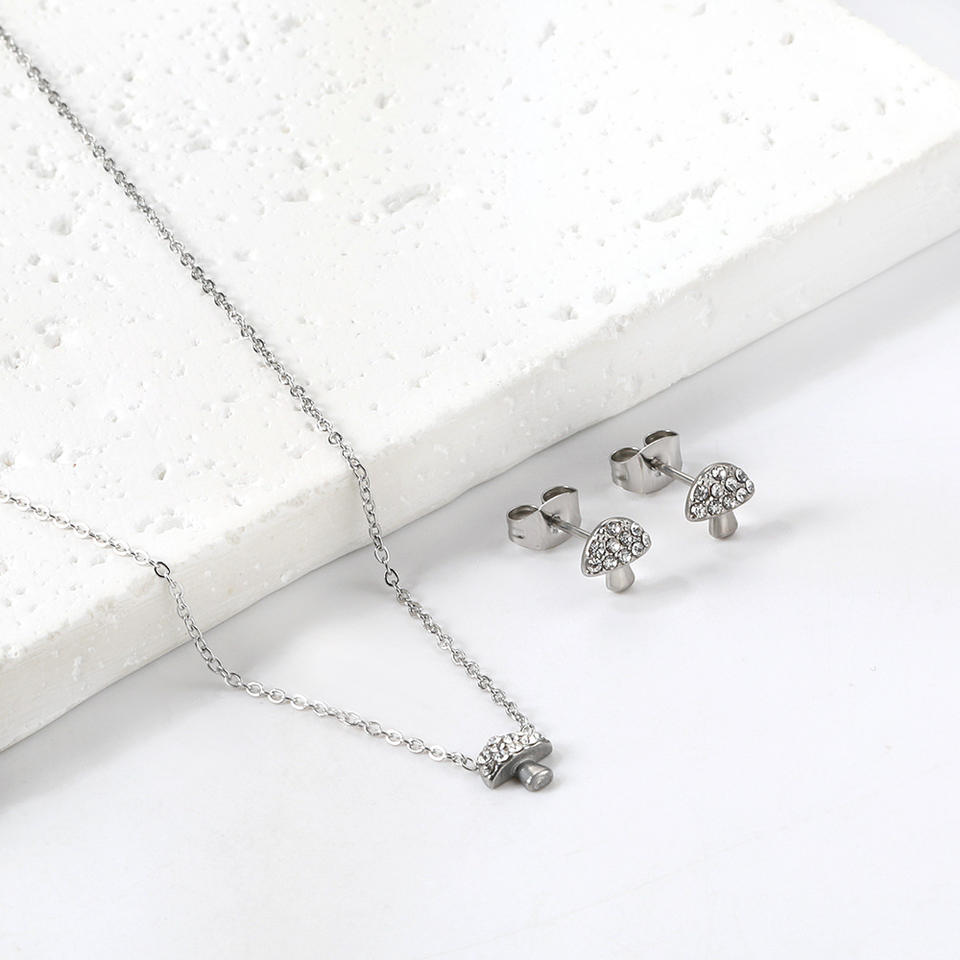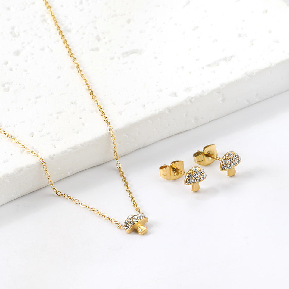 Ensemble de bijoux en strass en forme de champignon, pendentif et boucles d'oreilles en acier inoxydable doré et argenté, bijoux fins pour femmes, à porter au quotidien