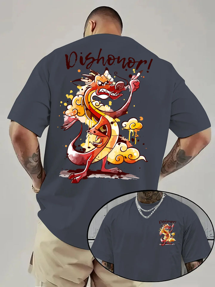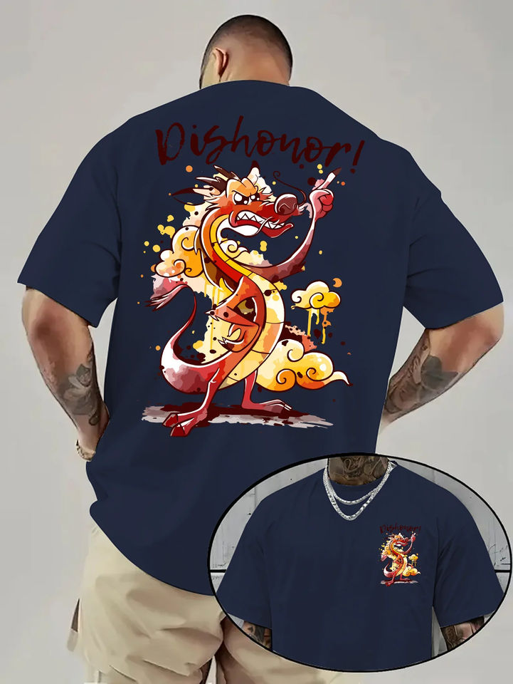 T-shirt à motif de dragon Mushu pour hommes, vêtements de loisirs quotidiens et d'activités thématiques, unisexe, en coton, manches courtes, surdimensionné