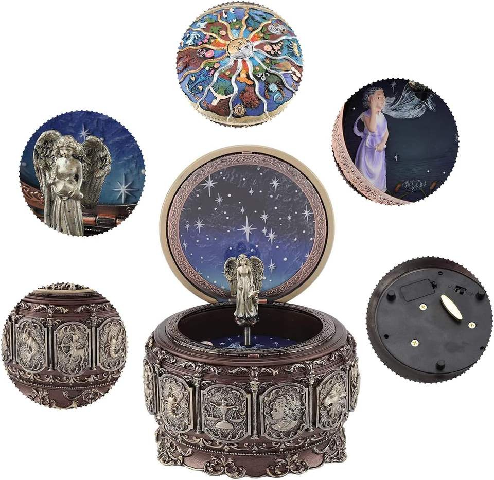 Style de boîte à musique joue le château dans l'air du ciel, boîte à musique rotative déesse Sankyo 18-Note Wind Up peint à la main