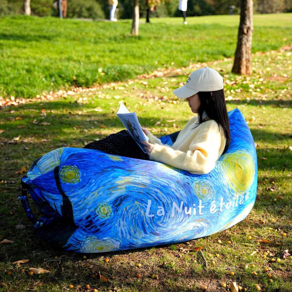Canapé gonflable pour festival de musique, canapé gonflable d'extérieur, canapé paresseux pour filles, sensation Internet, portable, activité de camping, arc-en-ciel, polyester