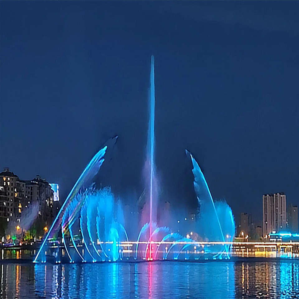 Fontaine musicale avec système de contrôle DMX 512, éclairage LED, construction en acier inoxydable 304/cuivre, spectacle de fontaines d'eau durables pour l'extérieur