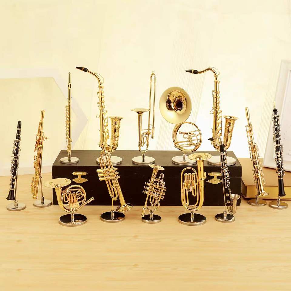 Instruments de Musique Mini Tuba Cor Sousaphone Trompette Saxophone Cornet Doré Cadeau Musical Mini Trompette Trombone Batterie