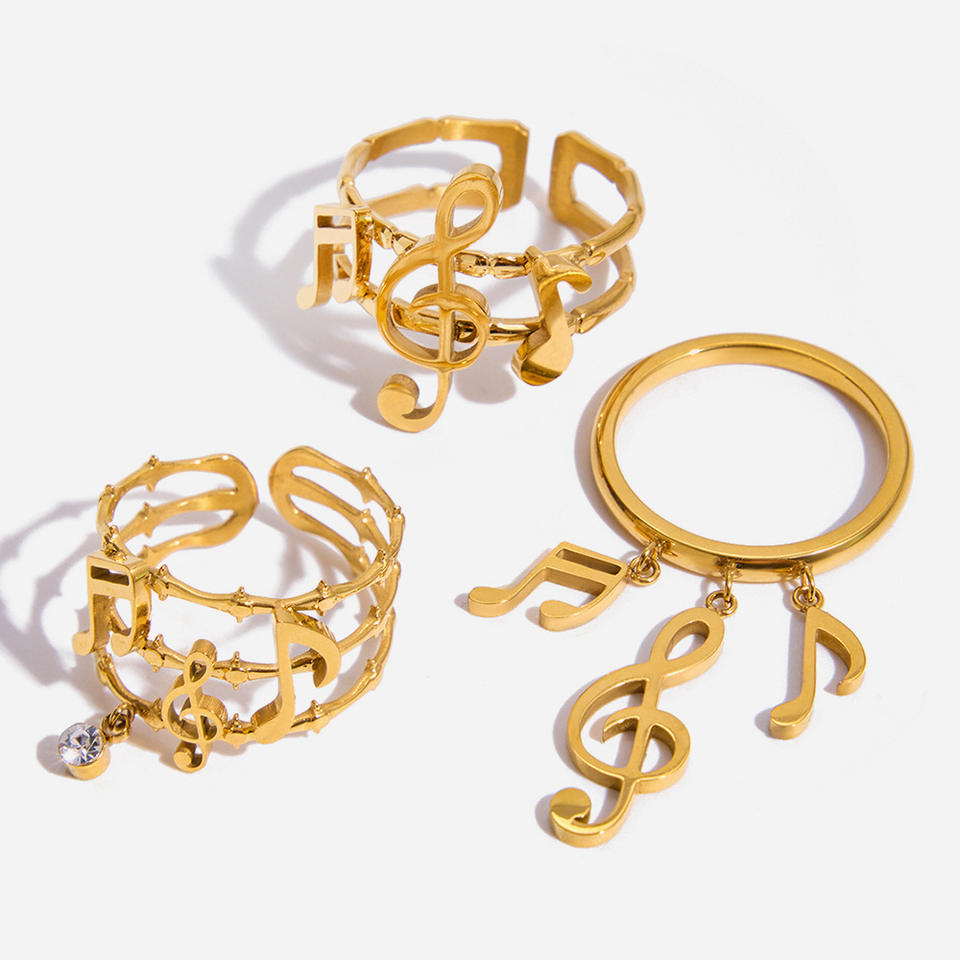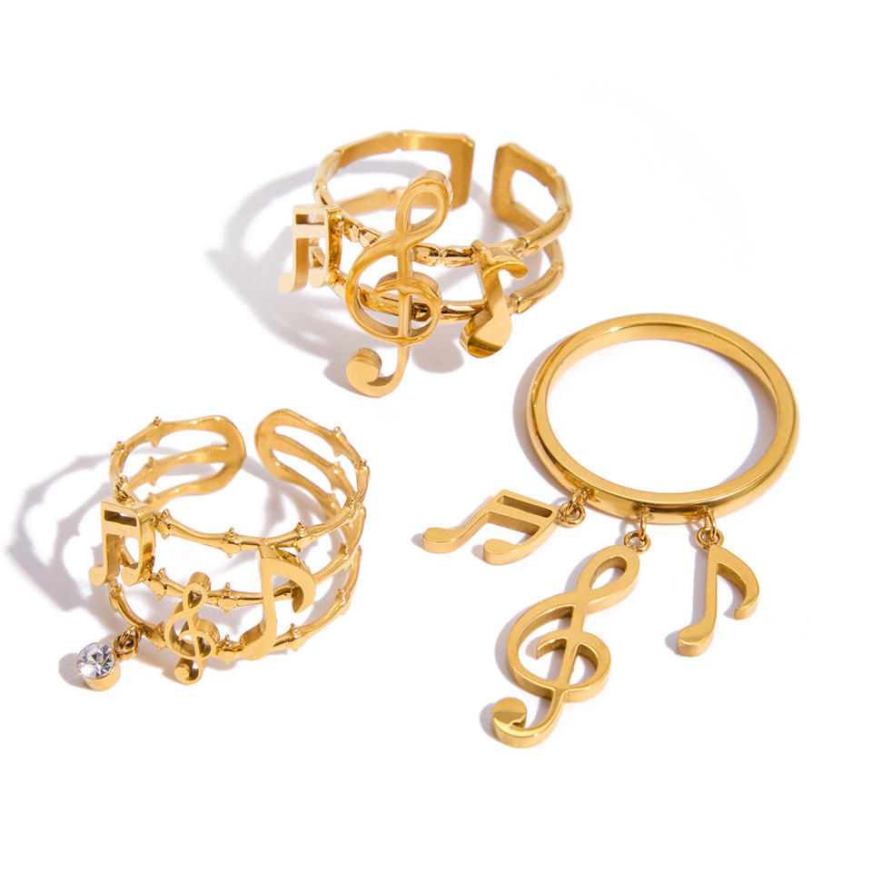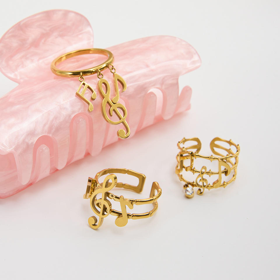 Bague réglable à double couche en forme de note de musique, bijoux en or, cadeau unisexe
