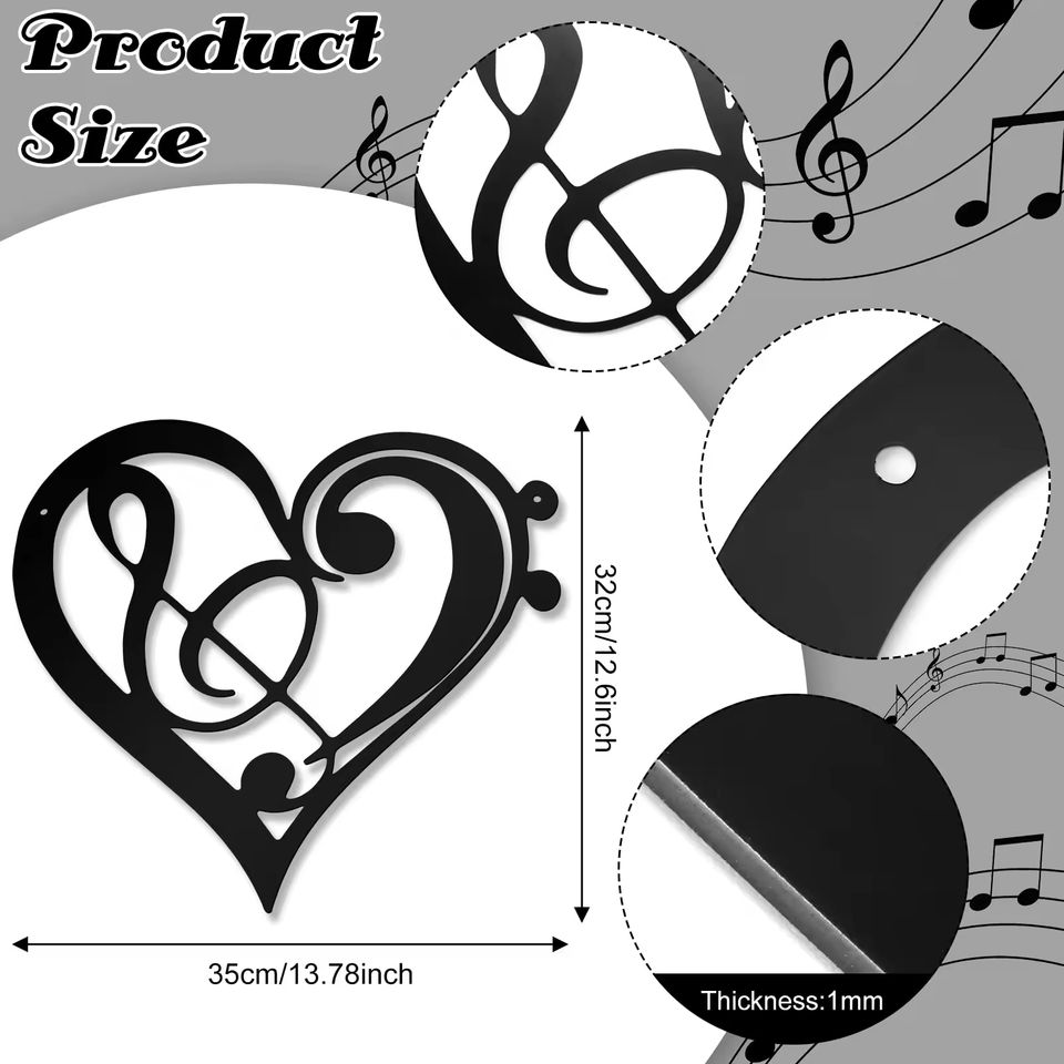 Panneau mural suspendu Notes de musique pour salle de musique Modern Heart Metal Music Wall Decor