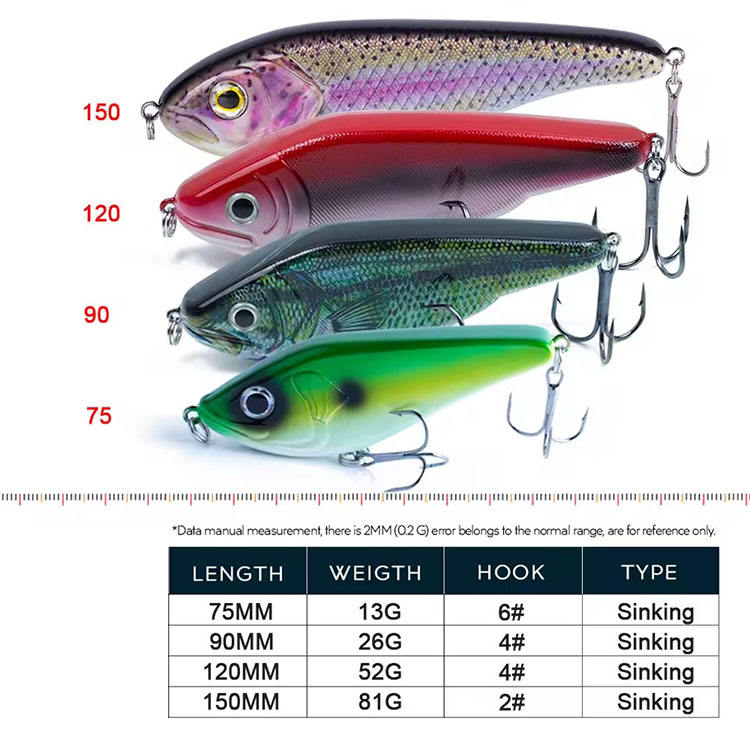 Leurre de pêche Musky Jerkbaits, leurre coulissant à descente lente, wobbler, crankbaits, rattlin, corps dur, vib, pêche au brochet, pêche au black bass