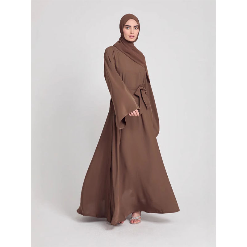 Robe musulmane ethnique pour femmes, abaya à manches cloche, col rond, ceinture coupée, polyester, pour l'Aïd musulman, sans turban, robe femme