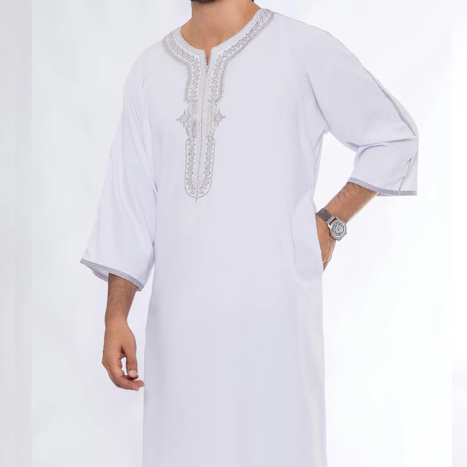 Vêtement musulman marocain pour hommes, fait main, brodé sur mesure, en coton vintage, col montant, longueur cheville, léger, respirant, grande taille, rapide
