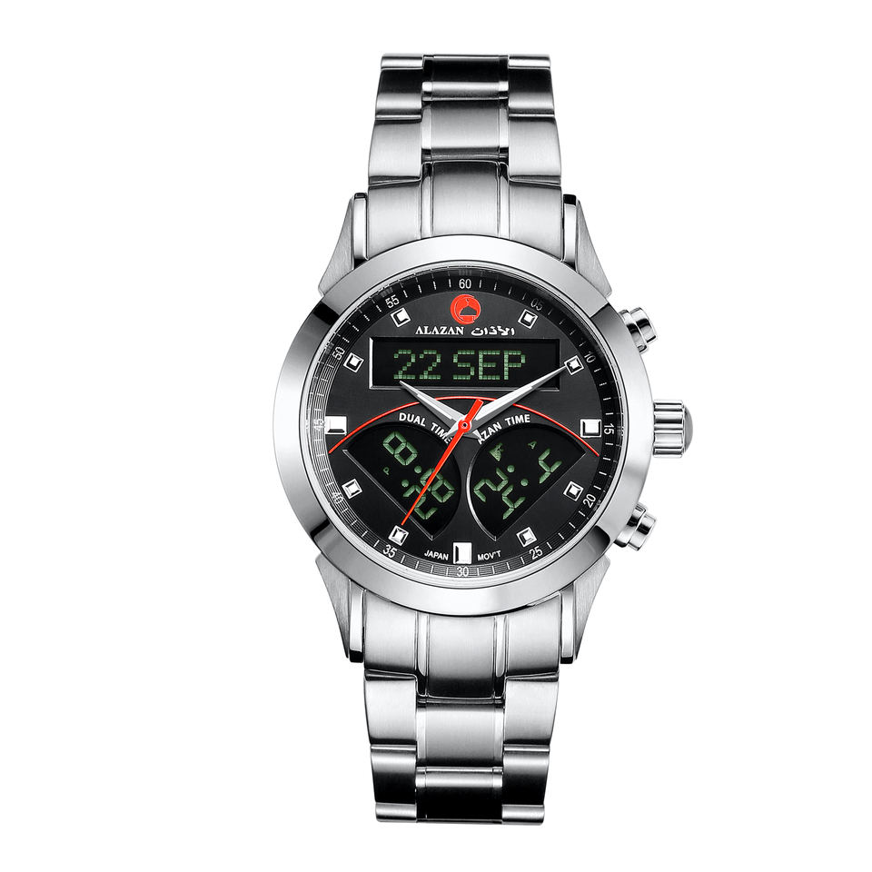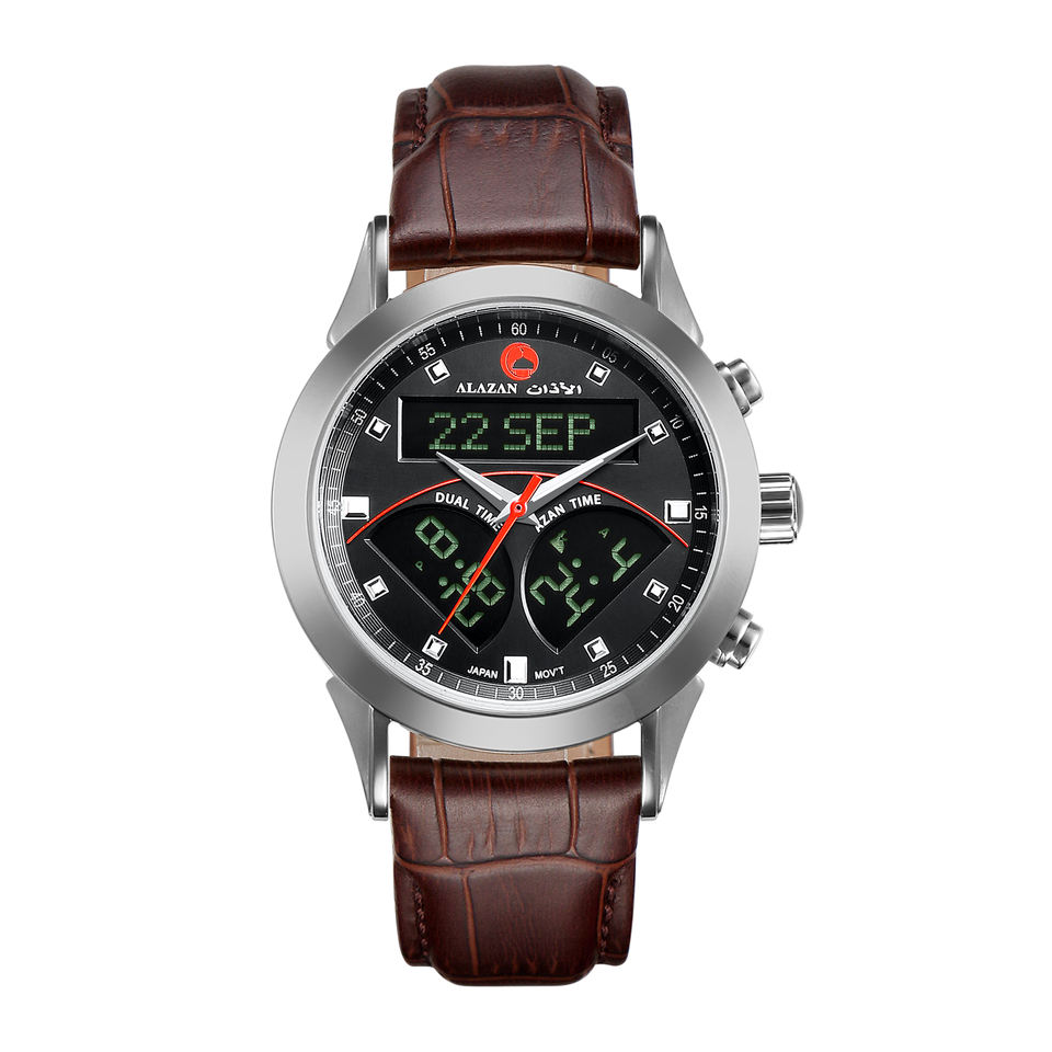 Montre de prière musulmane numérique à double mouvement islamique avec lumière EL, étanche à 100%, montre de prière six fois par jour pour le Hajj et le Hanifi