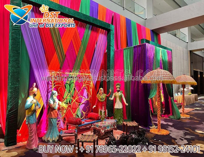 Bracelet de cérémonie musulman Walima Décoration de scène Punjabi Wedding Mehndi Stage Lovely Henna Party Stage Decor With Metal Arches