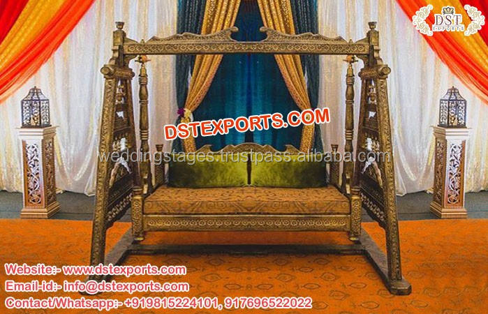 Muslim Walima Stage Swing/Jhula Indian Wedding Peacock Theme Swing Decor Wedding Wooden Silver Carved Swing/Jhula