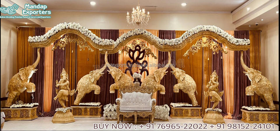 Décoration de scène pour cérémonie de mariage musulmane Walima, thème de mariage marocain, scène en FRP, réception de mariage arabe, événement, scène à thème doré, États-Unis