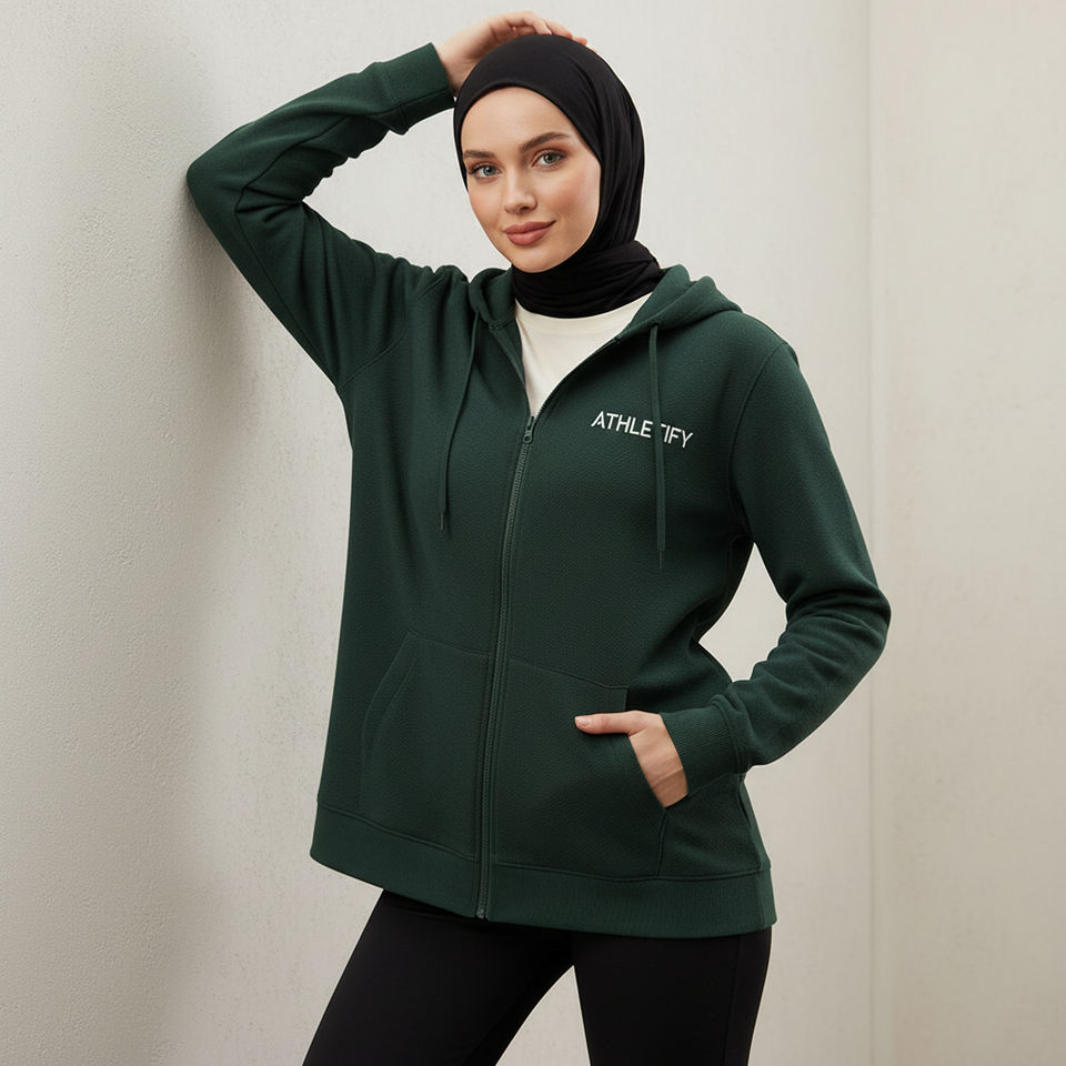 Sweat à capuche long zippé pour femme musulmane