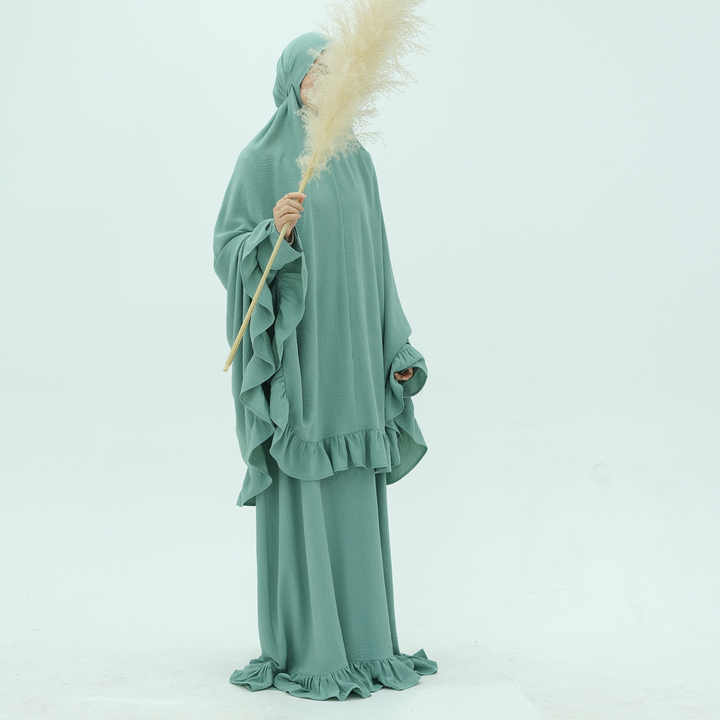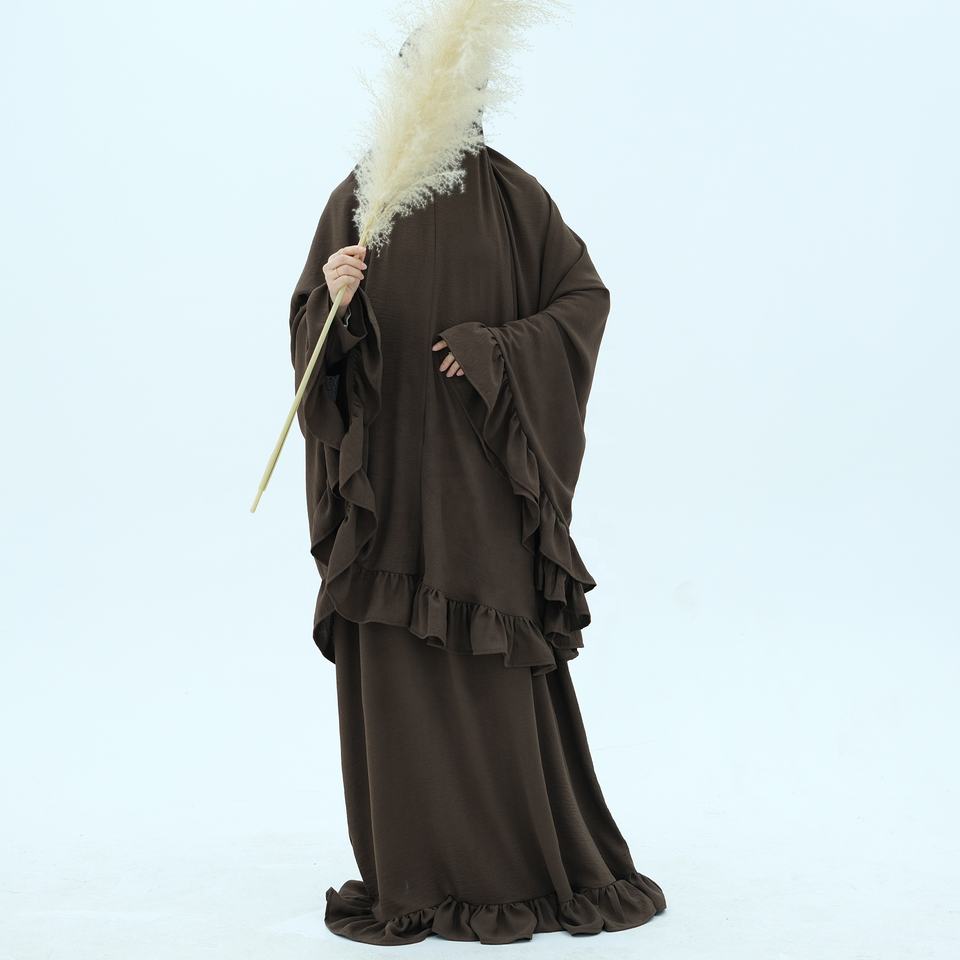 Ensemble deux pièces de robe hijab à volants pour femmes musulmanes Abaya Khimar Kaftan vêtement de prière du Ramadan Eid Djellaba robe abaya avec foulard