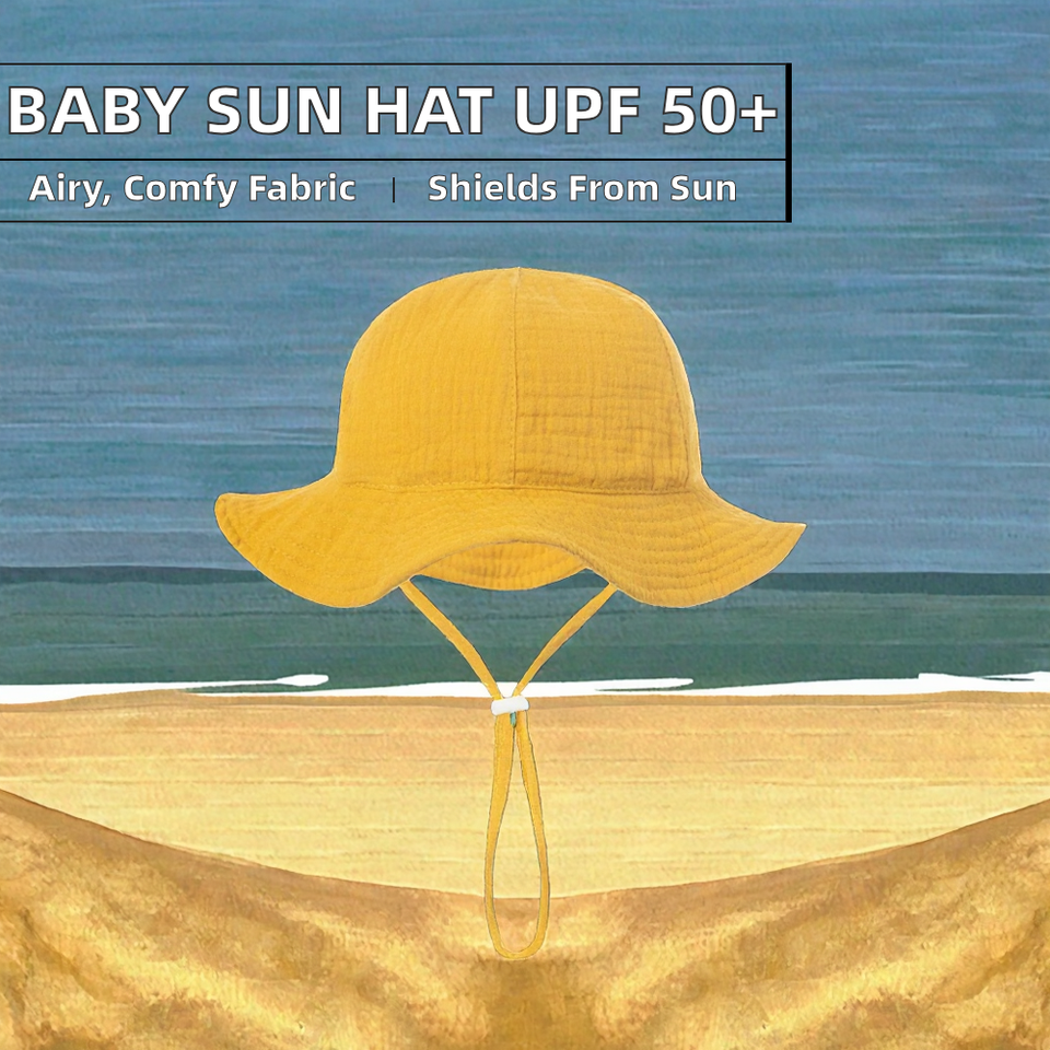 Chapeau de soleil en mousseline pour bébé UPF 50+ respirant coupe-vent en coton avec large bord pour l'extérieur, la plage, l'été, unisexe