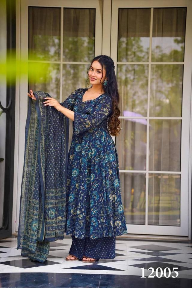 Robe en mousseline imprimée numériquement, entièrement évasée, sans manches, assortie à la Georgette Dupatta pour les mariages et les fêtes-Réversible