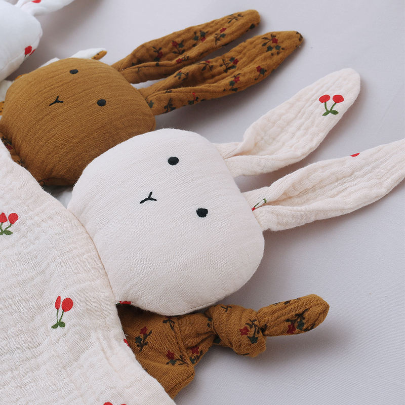 Doudou en mousseline lavable, adorable lapin, couverture de sécurité, couverture réconfortante, serviette en coton pour la maison