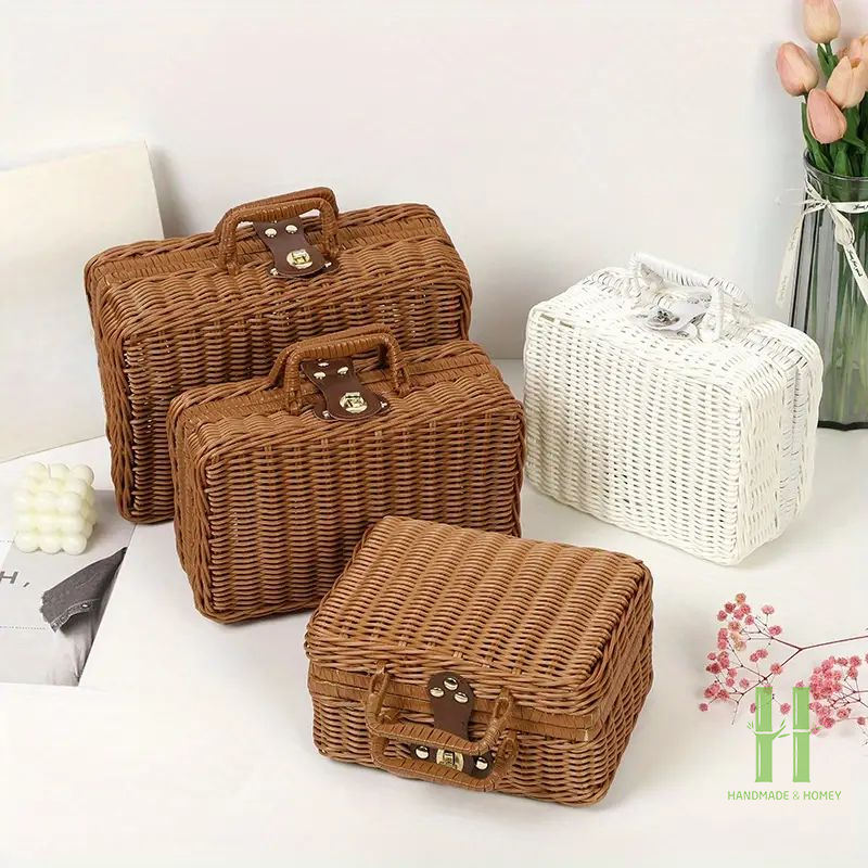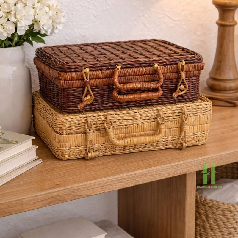 Valise vintage en rotin incontournable, faite à la main, coffre de rangement en osier naturel, mallette de voyage, rangement domestique écologique HNH Vietnam