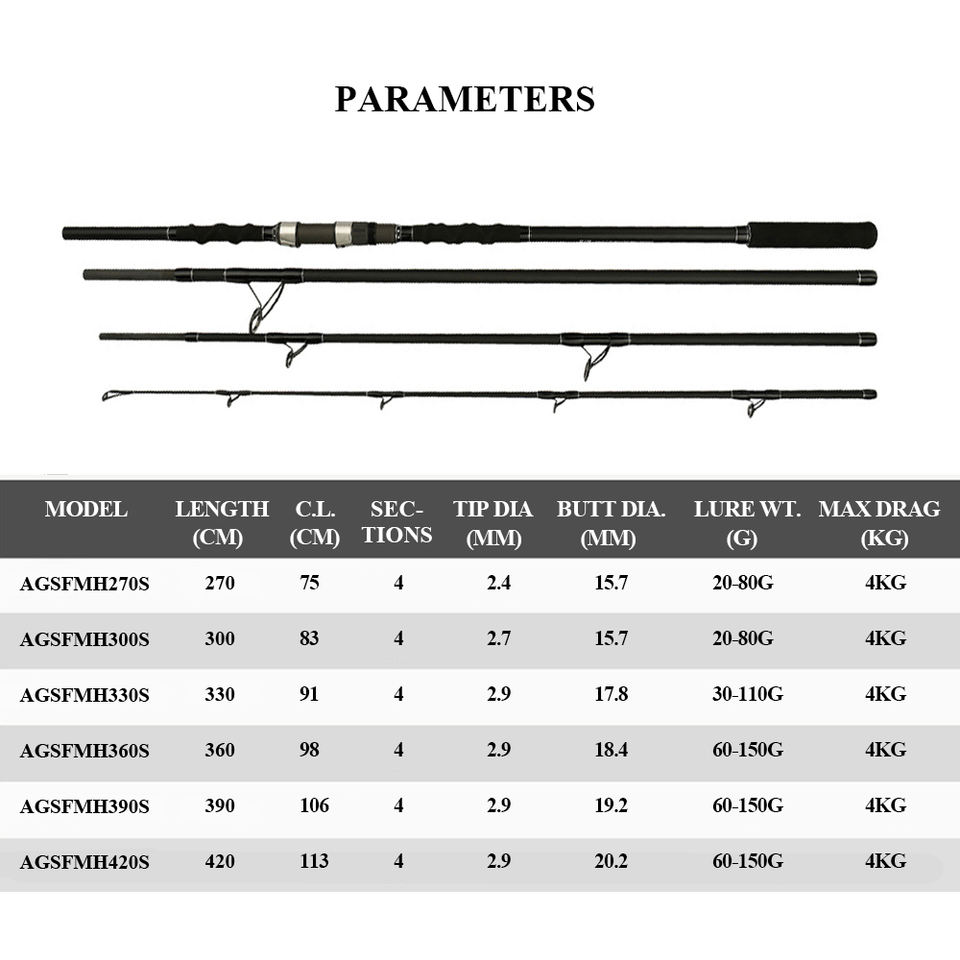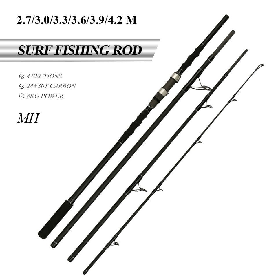 Must-buy canne à pêche 4 sections 2.7m-4.2m 24 + 30T haute teneur en carbone surf cannes à pêche EVA poignée surf cannes à pêche pôles