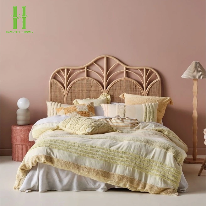 Lit en rotin artisanal moderne avec tête de lit simple, taille et couleur personnalisables pour la maison et l'hôtel, directement de l'usine