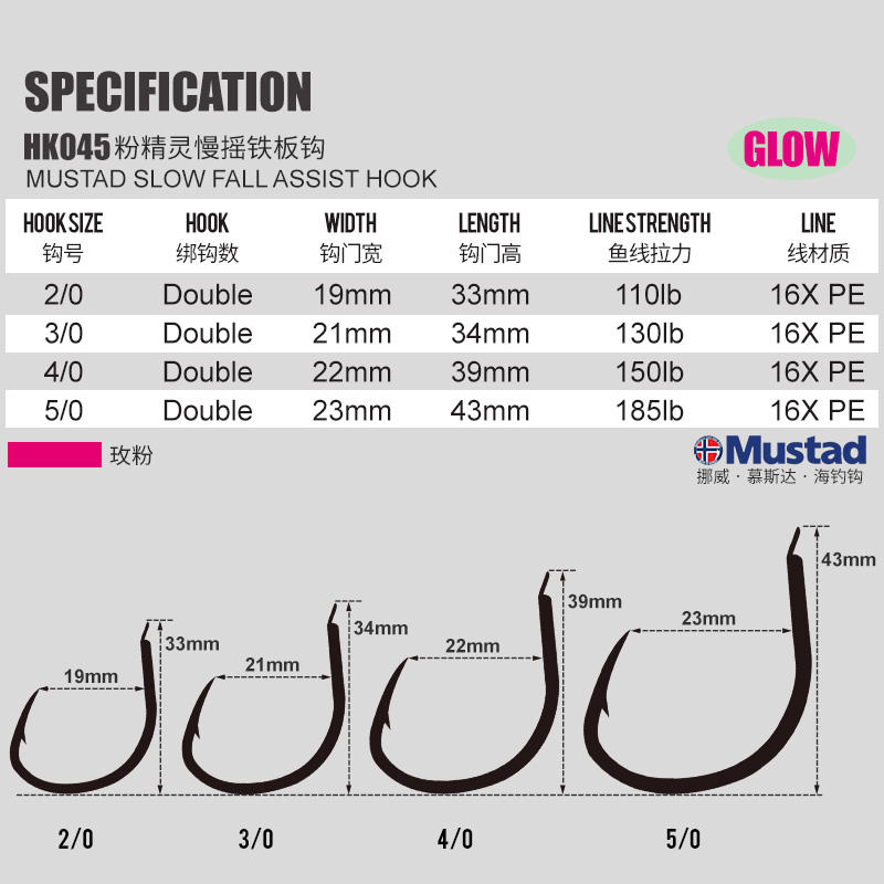 Mustad HK045 2/0 3/0 4/0 5/0 Series Hameçons de haute qualité Twin Assist Wholesale Popular Hooks Fishing Metal assist Hooks
