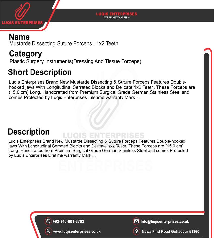Pinces à dissection Mustarde 1x2 dents, instrument chirurgical en acier inoxydable, pinces médicales de précision